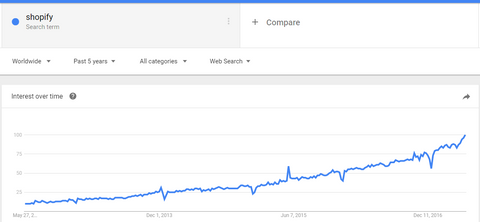 Shopify因为优秀的社媒整合能力,越来越受到企业的青睐。Google趋势数据显示,Shopify的搜索需求在近5年一直在成长。今天就把Shopify的完整建站流程分享一下。