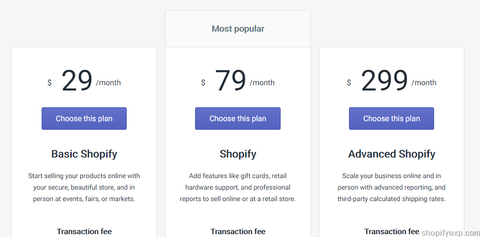 有三个计划可以选择:基本商店、商店、高级客户。因为刚刚开始,最好选择basic Shopify计划。在你的店铺启动之后,你还可以更改计划,使用更多功能。